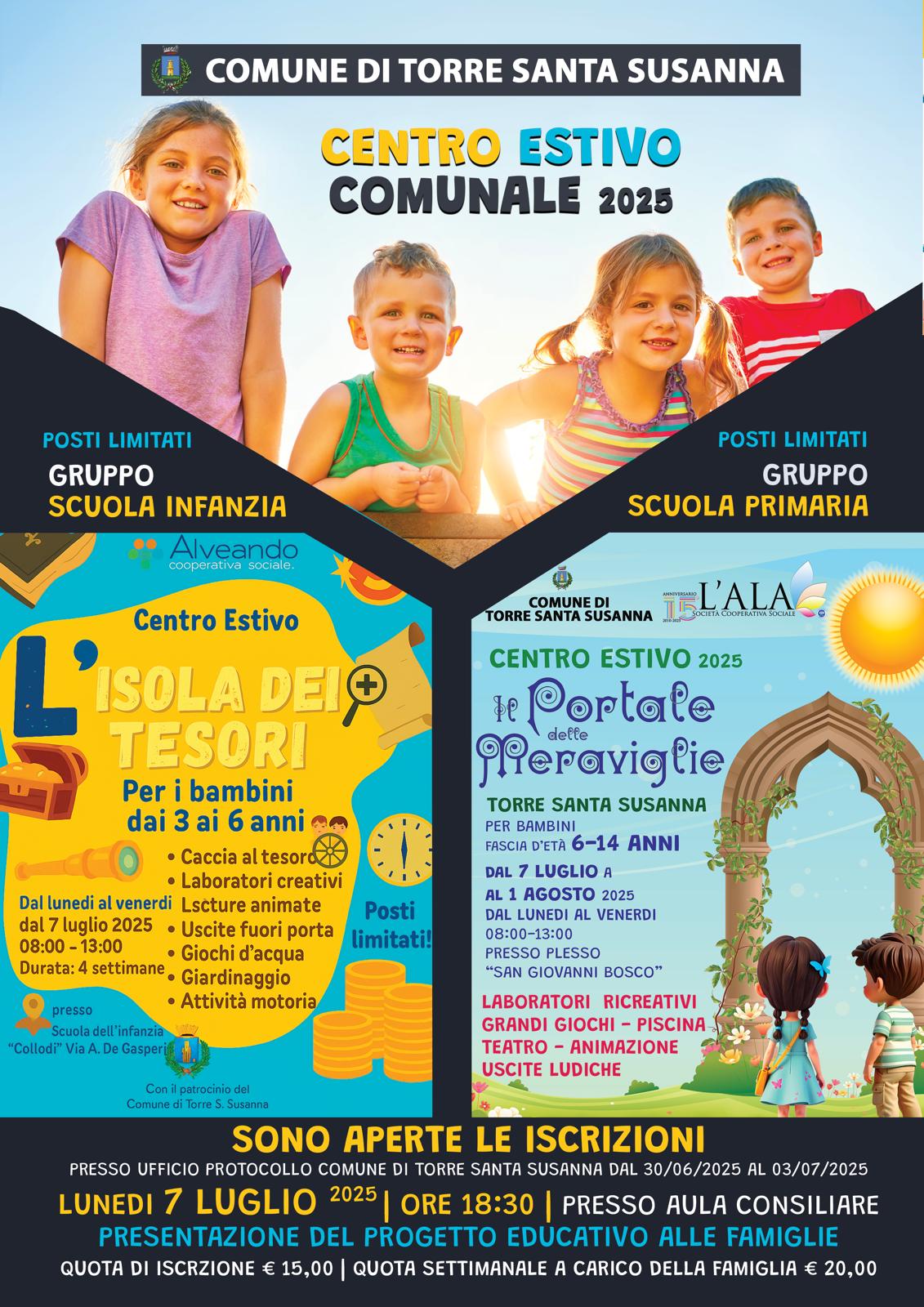 Si informano le famiglie dei bambini iscritti al Centro Estivo Comunale 2025 che le domande di iscrizione sono state tutte accolte.