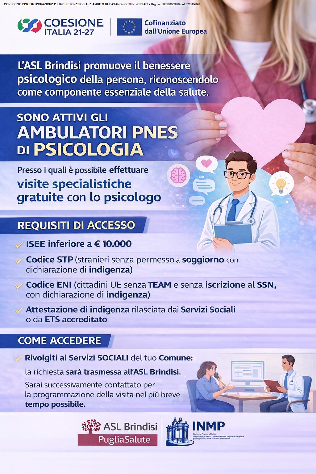 La Asl Brindisi promuove attivamente il benessere psicologico, che è una componente essenziale della salute di ogni persona, con gli ambulatori PNES di Psicologia. In queste strutture è possibile effettuare visite specialistiche gratuite con lo psicologo, un supporto concreto per chi ne ha bisogno.