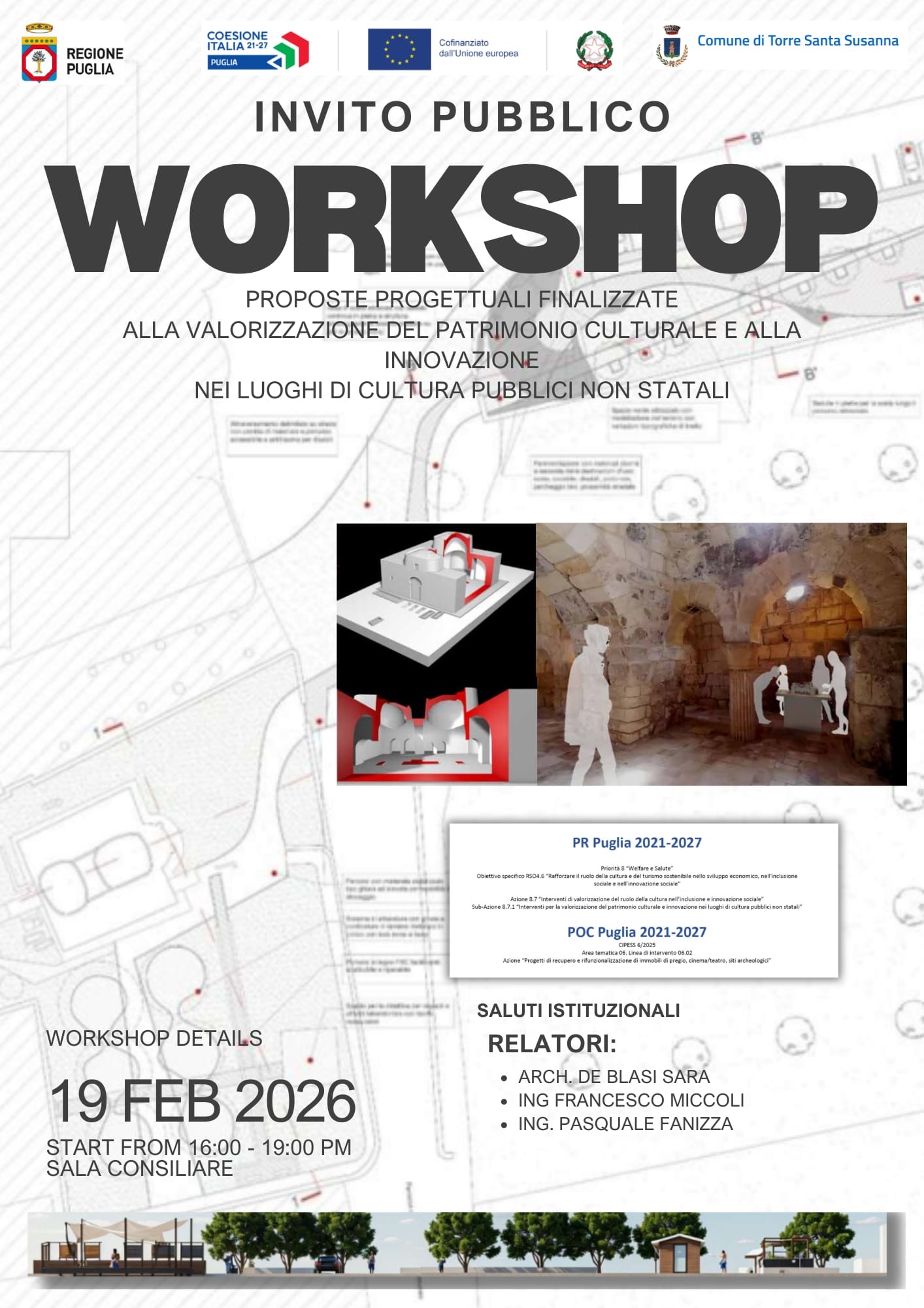 Invito pubblico a Workshop – Proposte progettuali finalizzate alla valorizzazione del patrimonio culturale e alla innovazione nei luoghi di cultura pubblici non statali.