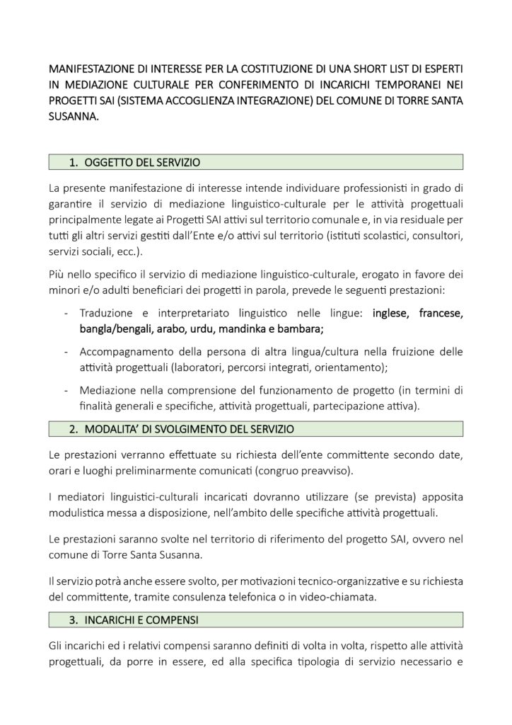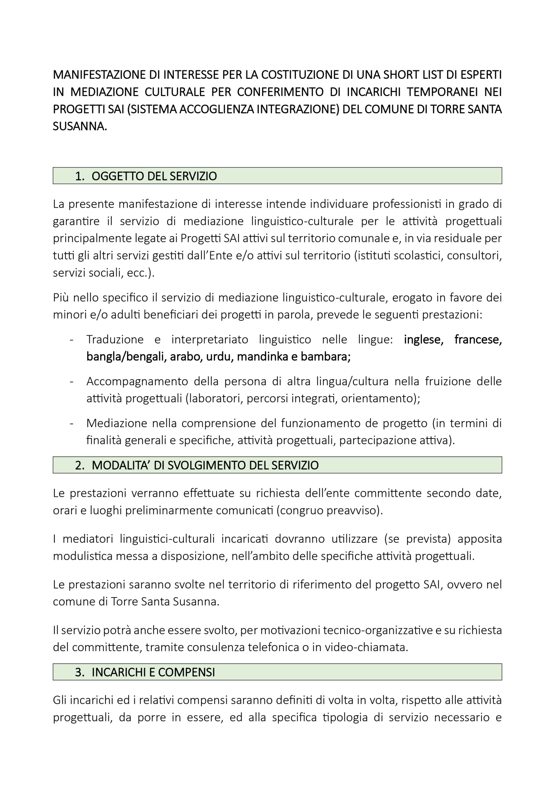 MANIFESTAZIONE DI INTERESSE PER LA COSTITUZIONE DI UNA SHORT LIST ALBO_page-0001 | ← MANIFESTAZIONE DI INTERESSE PER LA COSTITUZIONE DI UNA SHORT LIST DI ESPERTI IN MEDIAZIONE CULTURALE PER CONFERIMENTO DI INCARICHI TEMPORANEI NEI PROGETTI SAI (SISTEMA ACCOGLIENZA INTEGRAZIONE) DEL COMUNE DI TORRE SANTA SUSANNA.
