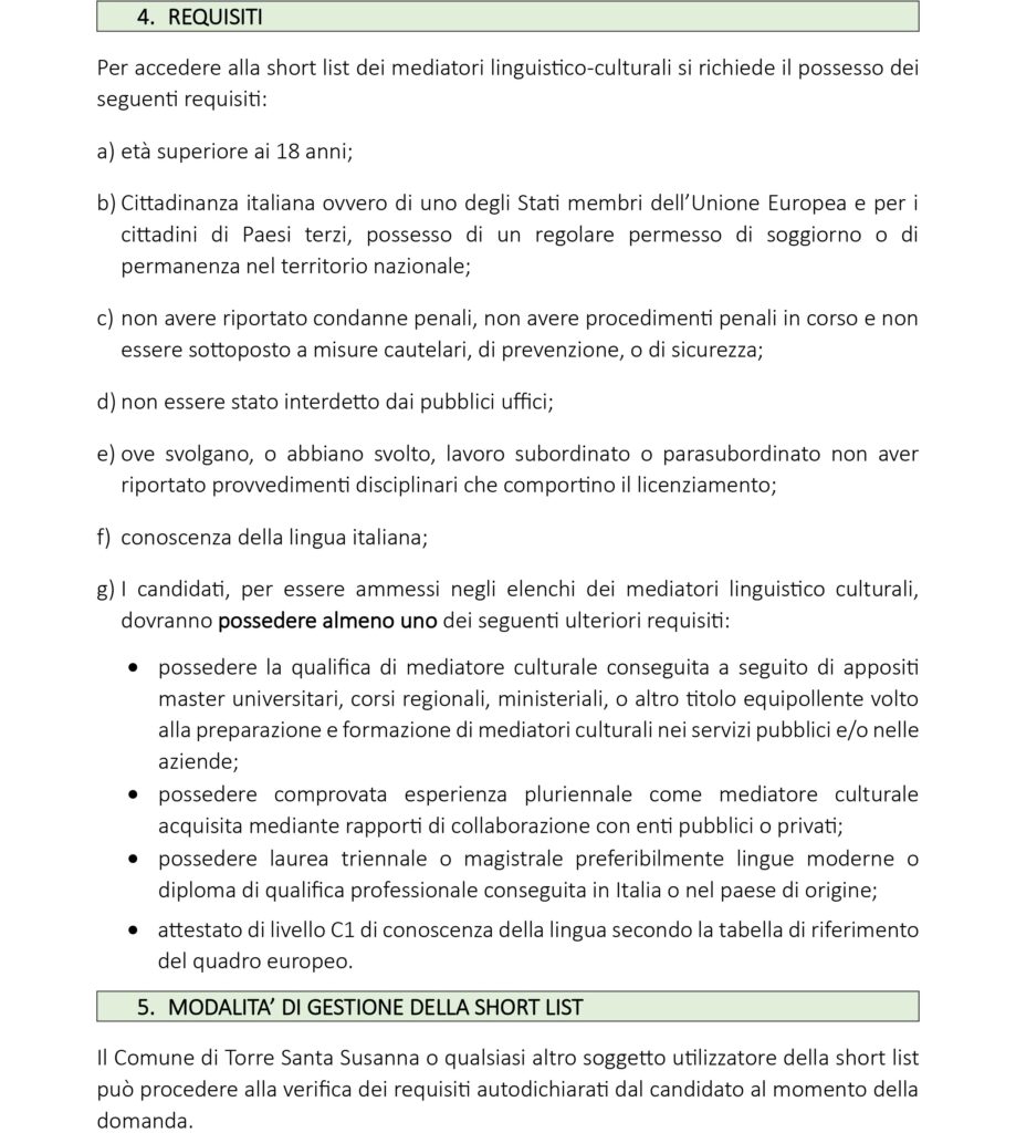 MANIFESTAZIONE DI INTERESSE PER LA COSTITUZIONE DI UNA SHORT LIST ALBO_page-0003 | ← MANIFESTAZIONE DI INTERESSE PER LA COSTITUZIONE DI UNA SHORT LIST DI ESPERTI IN MEDIAZIONE CULTURALE PER CONFERIMENTO DI INCARICHI TEMPORANEI NEI PROGETTI SAI (SISTEMA ACCOGLIENZA INTEGRAZIONE) DEL COMUNE DI TORRE SANTA SUSANNA.