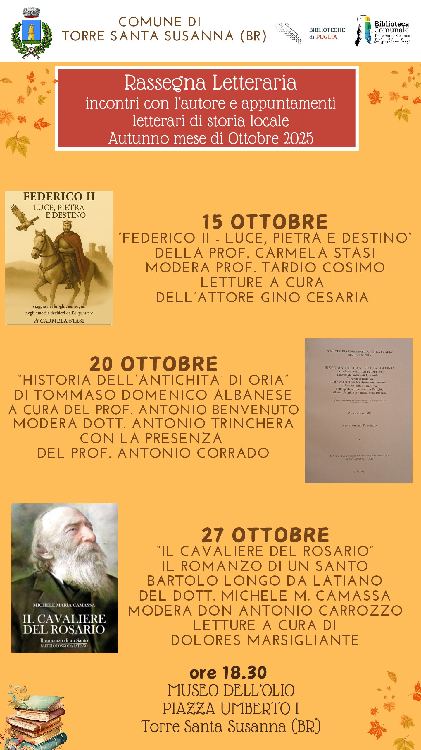 RASSEGNA LETTERARIA INCONTRI CON L’AUTORE E APPUNTAMENTI LETTERARI DI STORIA LOCALE. MESE DI OTTOBRE 2025